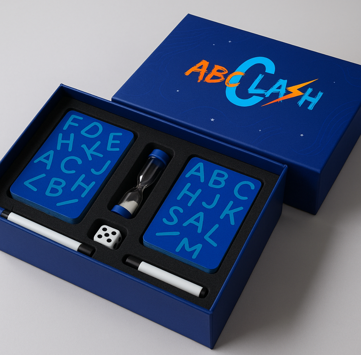 Inspiré du classique du baccalauréat français, ABC Clash lui donne une touche de fraîcheur et de dynamisme avec des cartes uniques, des défis colorés et des règles ludiques conçues pour stimuler la réflexion et susciter de grands sourires.